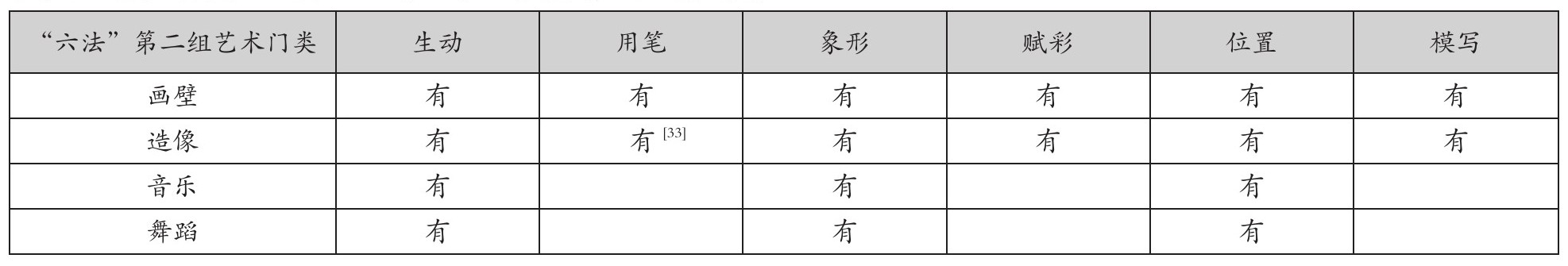 表2 艺术门类与“六法”“二、二字”断句后第一组对应分析