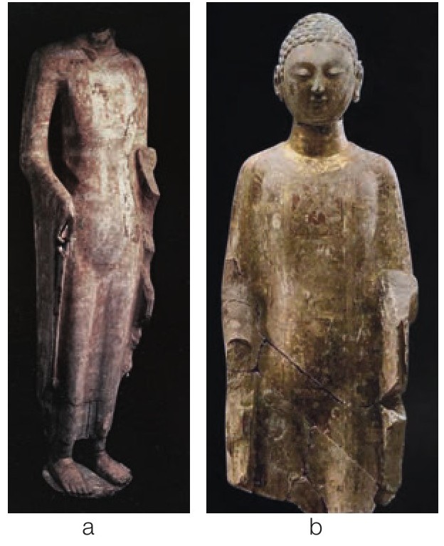 图4 a.青州龙兴寺窖藏出土北齐卢舍那佛造像b.莫高窟第428窟卢舍那佛立像壁画