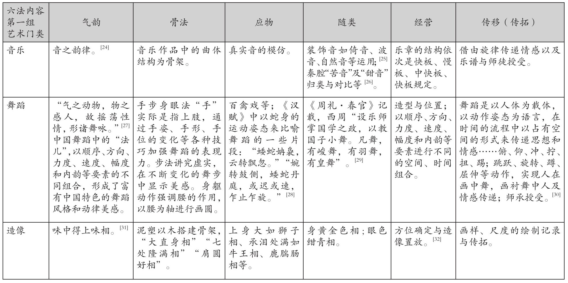 由此可见,“六法”的适用性并非仅限于画的品评,而是以“技法”“标准”的要求,同时在多领域存在;而对“六法”排序研究进一步证明“六法”与造塑之法的关联更为密切。