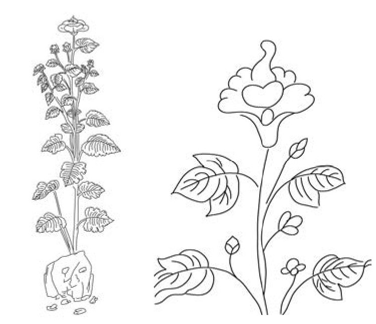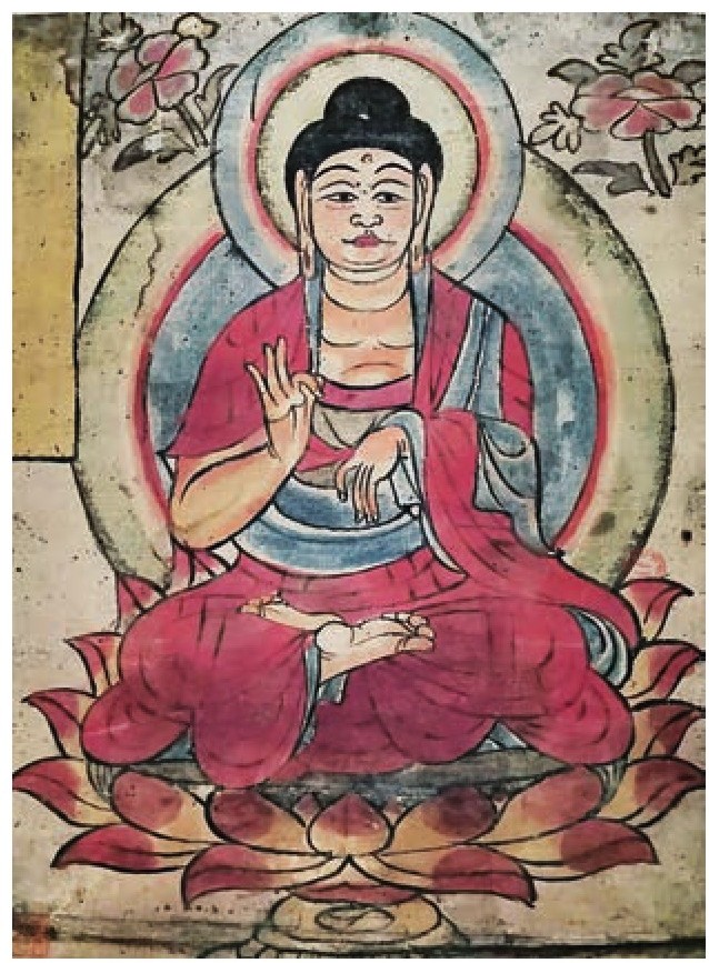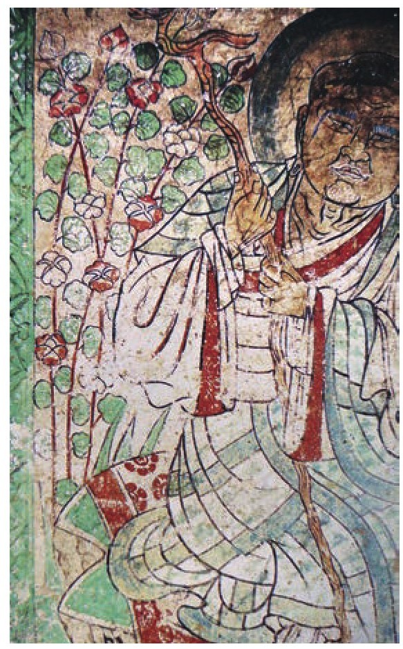 图16 纸本释迦牟尼像中的蜀葵,五代,法国国家图书馆藏(P4518—12)