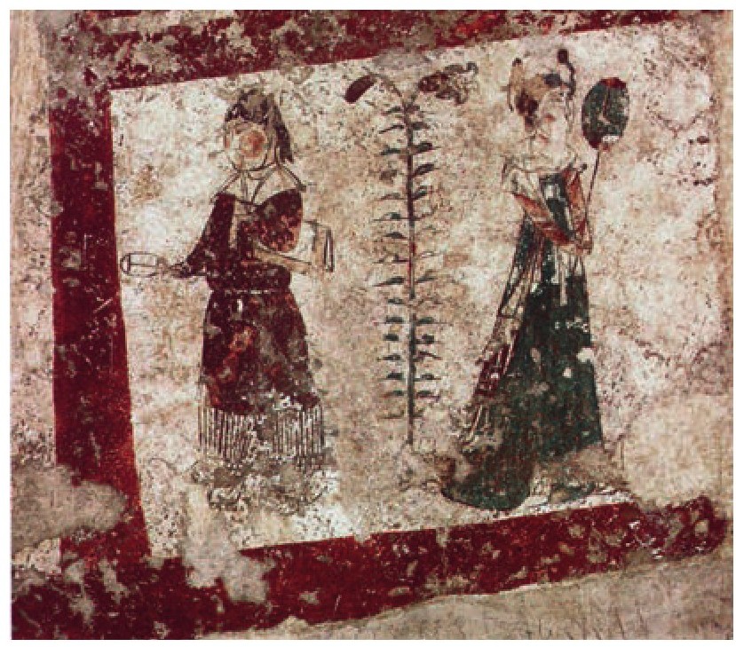 图32 陕西富平李凤墓甬道仕女图,唐代