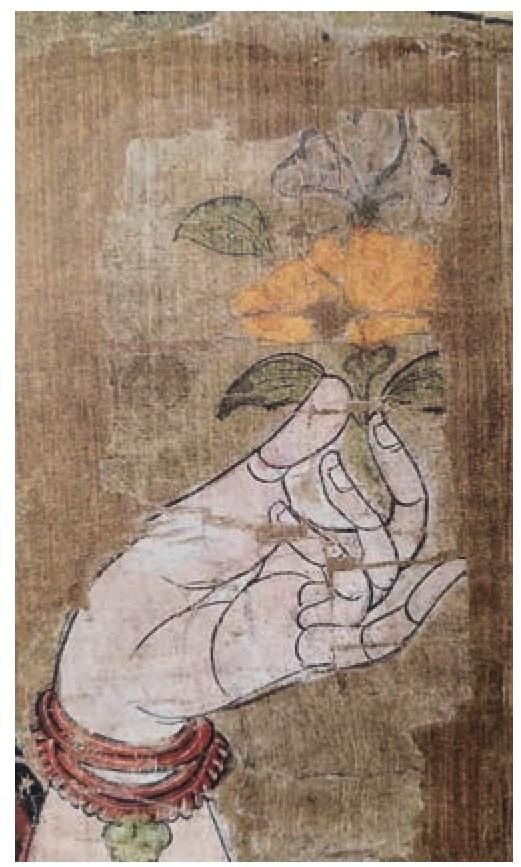 图16 纸本释迦牟尼像中的蜀葵,五代,法国国家图书馆藏(P4518—12)