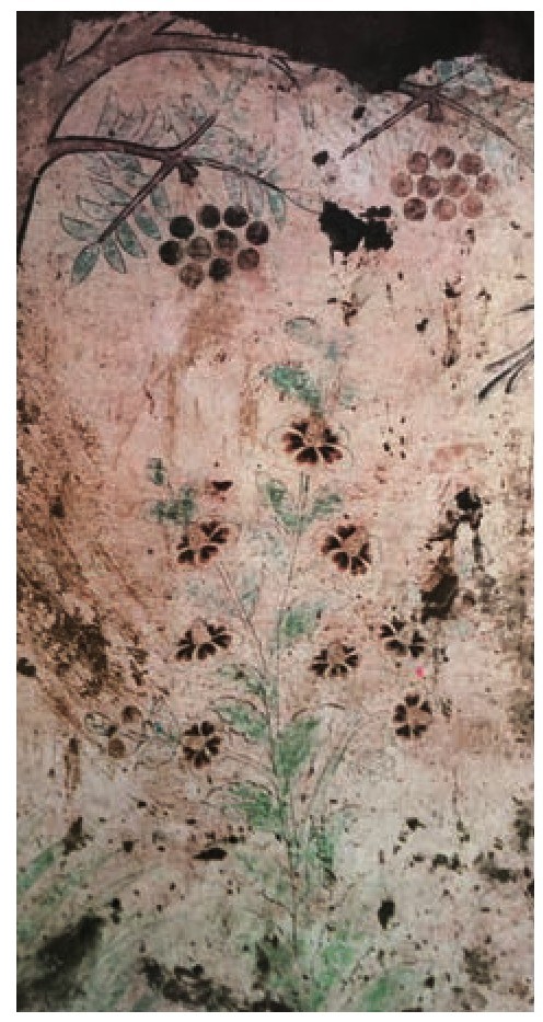 莫高窟作为古丝绸之路上的交通要塞,向来有“华容交汇一都市”的美称。尤其是唐代以来,莫高窟与中原的交流更为密切。其中唐代前期诸多洞窟壁画因受长安影响而风格大变,已经成为学界乐道并普遍接受的事实。正是在这一背景下,莫高窟入唐以来的洞窟中开始出现蜀葵、萱草等图像,且与京畿地区墓葬中的同类图像在造型、位置等方面具有高度的一致性。这种现象也从另一方面说明了敦煌与内地文化艺术交流的广泛与深入程度,继而可以解释新疆地区石窟中也出现蜀葵、萱草等图像的原因。