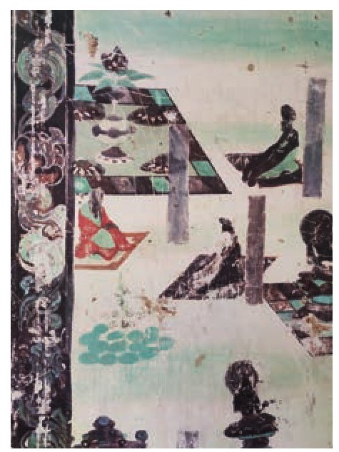 总体来看,莫高窟唐五代蜀葵图像被安排在多个位置,无论是被当作“界格”起分隔作用,还是穿插于人物之间点缀画面,抑或是执于手中、浮在虚空之中作供养之用,都无不根植于中原图式与莫高窟自身传统当中。