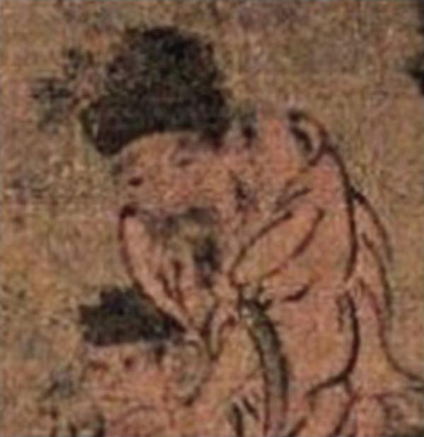 这些蛛丝马迹还原了戴进临仿波士顿《春社醉归图》的事实,而现在台北故宫博物院的本子又是仿戴之作。故可推断,《春社醉归图》中所出现的简单无脚幞头,应是省略性临仿当额破开的无角幞头所致,故还原骑牛老者真实形象当以这种破开的无角幞头考虑。