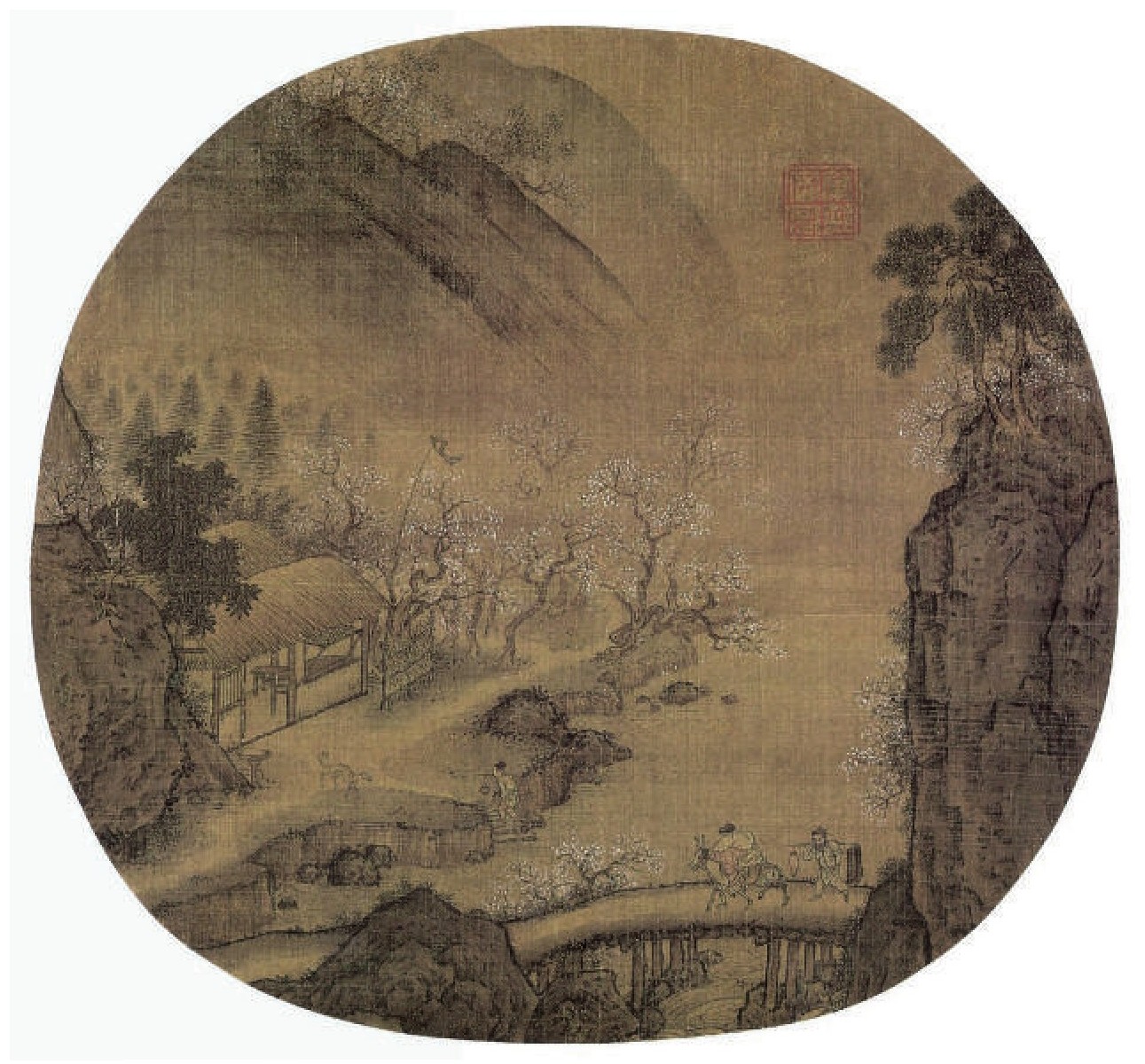 图1 (传)李唐《春社醉归图》,绢本设色,25.7厘米×27.7厘米,波士顿美术馆藏