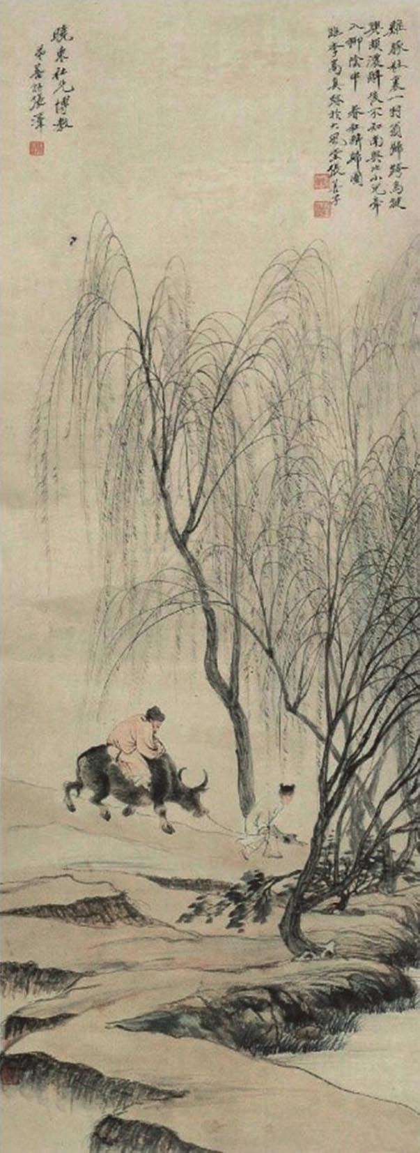 综上所述,刘凝之骑牛已然成为了一个精神图示被传递使用,这个精神更多被赋予到了骑牛的行为当中。因此,刘凝之骑牛的典故在《春社醉归图》中的运用,为骑牛老者安放的,并不是刘凝之的身份,而是“刘凝之”的品格。于是我们可以说,粉本意象中骑牛老叟就是一个有着刘凝之骑牛精神的向往归隐的文人。