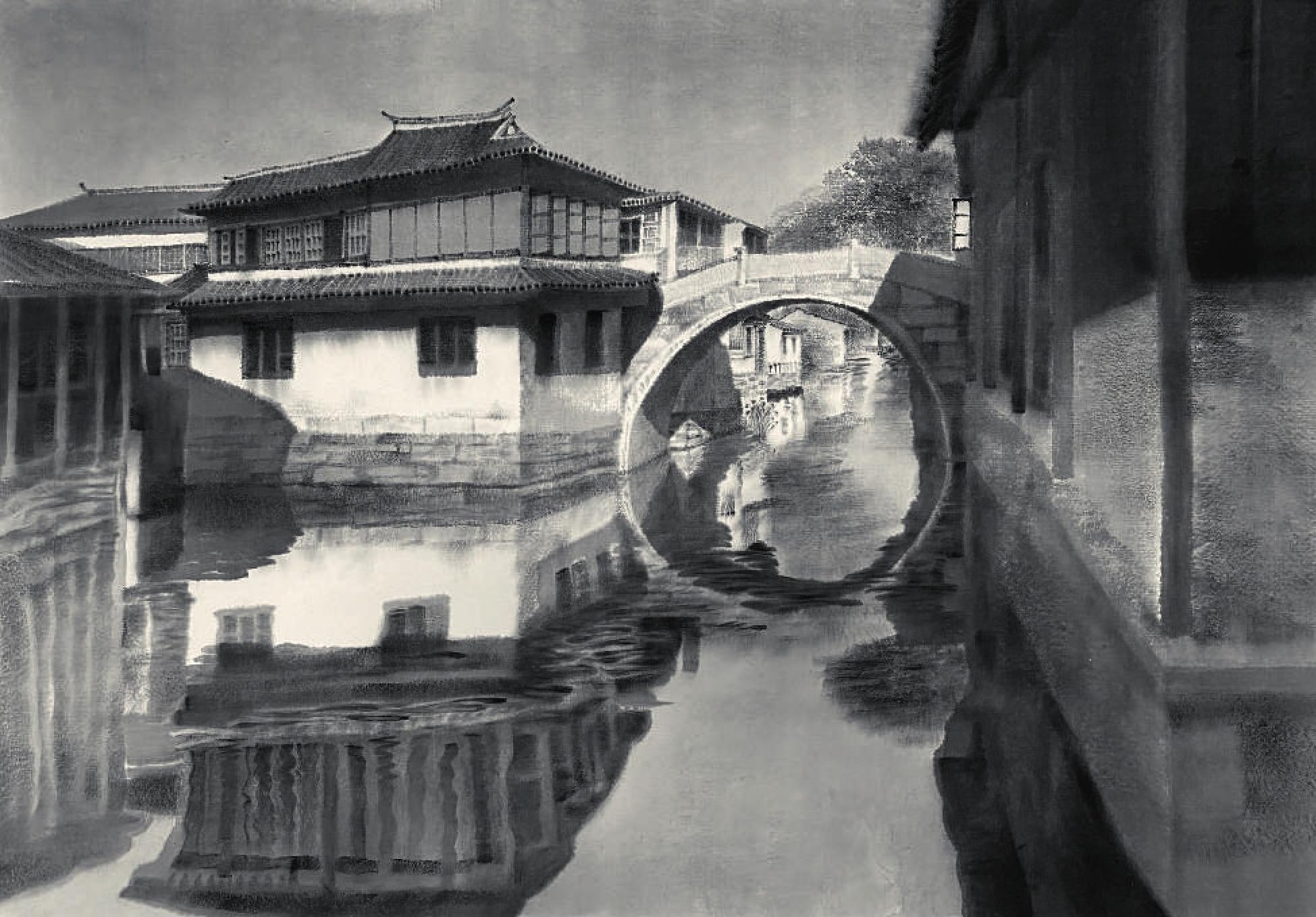 图5 刘赦《水乡系列之一》,纸本水墨,70cm×100cm,2021年