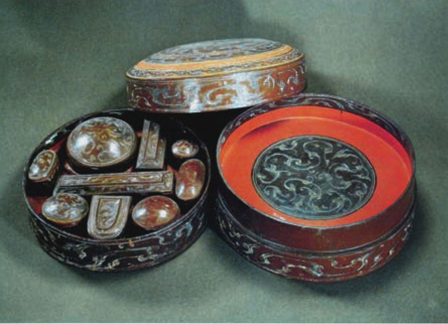 图2 西汉单层五子漆妆奁,长沙马王堆汉墓出土