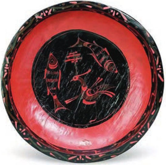 图6 秦彩绘凤鱼纹漆盂,云梦睡虎地11号墓出土