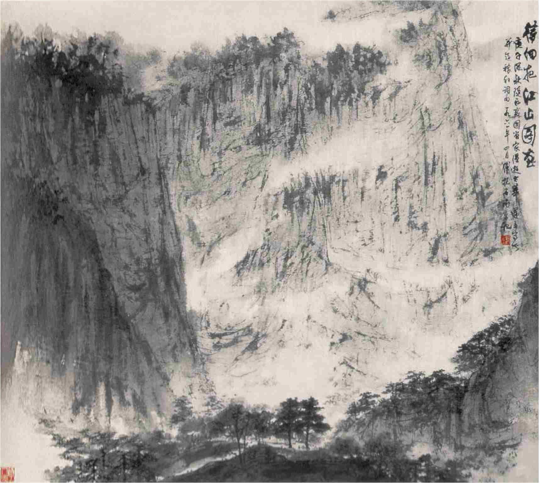 画家为山水代言,实质上是笔墨为画家抒情造诣。尽管是笔墨构成了一幅画,但笔墨不过是作者与作品的一种媒介。媒介必须服从画家主体的思想、精神和情感,出色的山水画总是优秀画家饱含自己激情的产物,是画家找到了合适的笔墨语言。很少有像傅抱石这样既通晓传统各种技法,又对诸多技法极不满意的。“思想变了,笔墨不能不变”是20世纪五六十年代傅抱石经常说的一句话,那时为了表示对党和新中国的拥护,画家们都努力表现新生活、新题材。