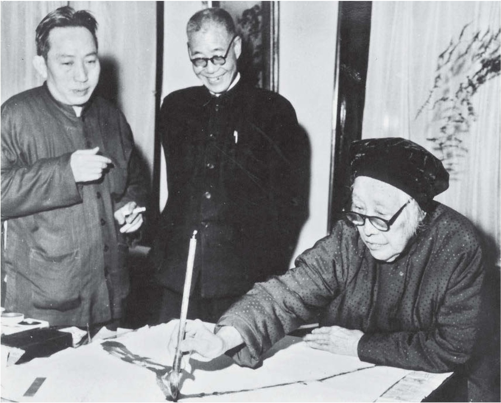傅抱石与潘天寿在杭州观看何香凝作画,1962年