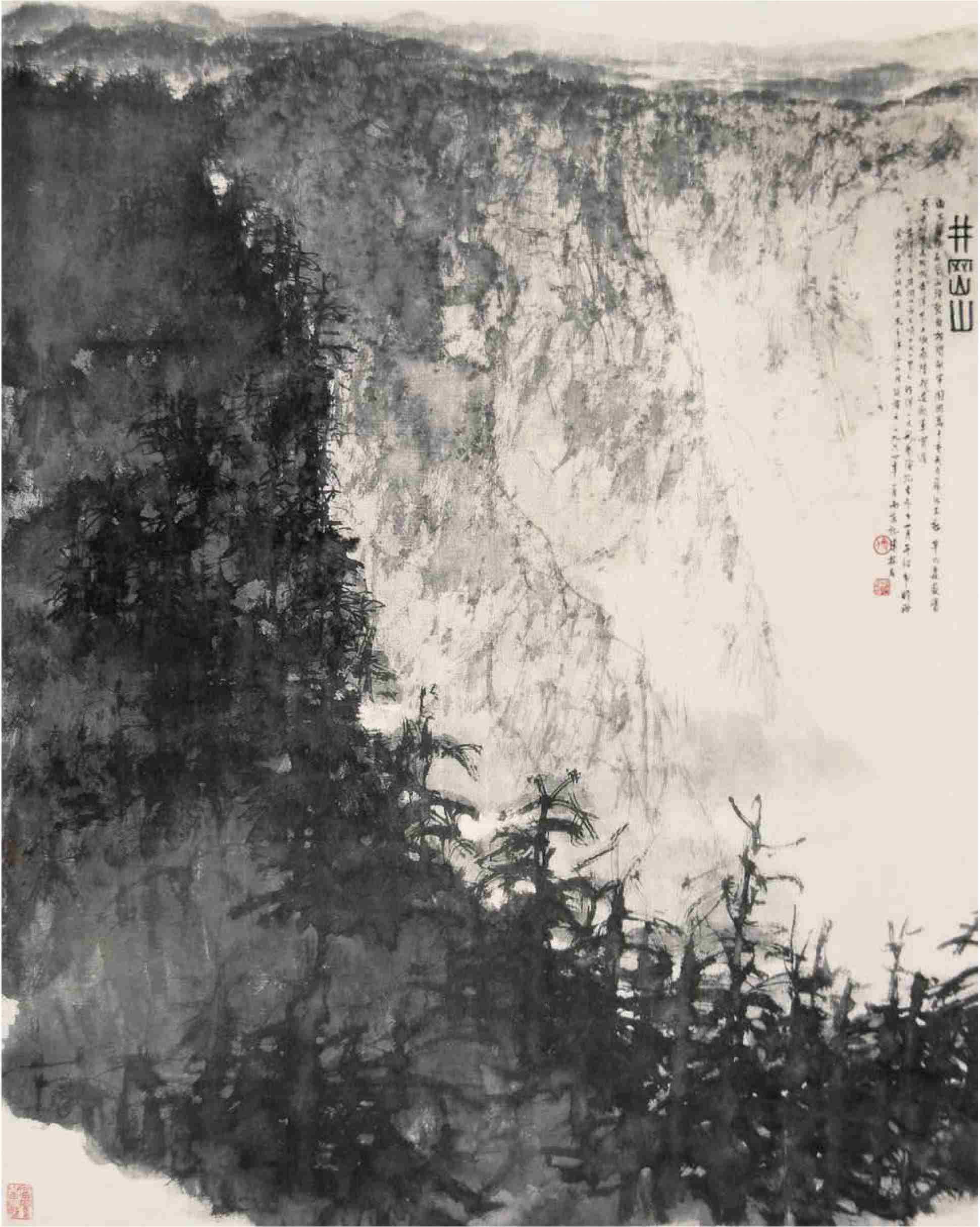 当然,最被人称道,最有影响的技法独创,无疑是连皴带擦的散笔皴,即人称“抱石皴”以及多重染法。“抱石皴”最初出现在他四十年代初重庆金刚坡时期的作品里。傅抱石自己曾记道:“我为适应画面的需要而不得不修改变更一贯的习惯和技法,如画树,染山,皴石之类”,“我的经验使我深深相信这是打破笔墨约束的第一法门。”(1942年《壬午重庆画展自序》)的确,金刚坡一带的环境山岳变化多姿,林木繁茂而又可见山骨嶙峋,使他产生了很强的创作欲望,而传统的勾斫法皴法,像斧劈皴、荷叶皴、折带皴,以及披麻皴又都难以画出此地的真山水神韵。