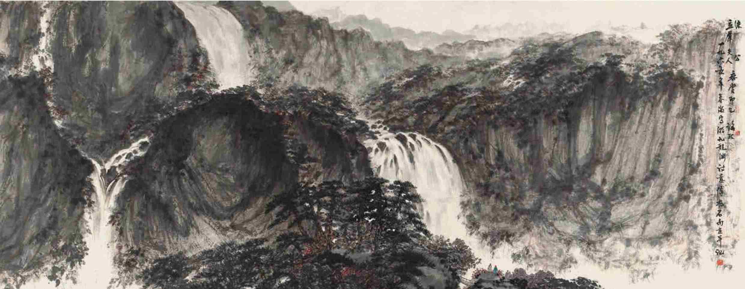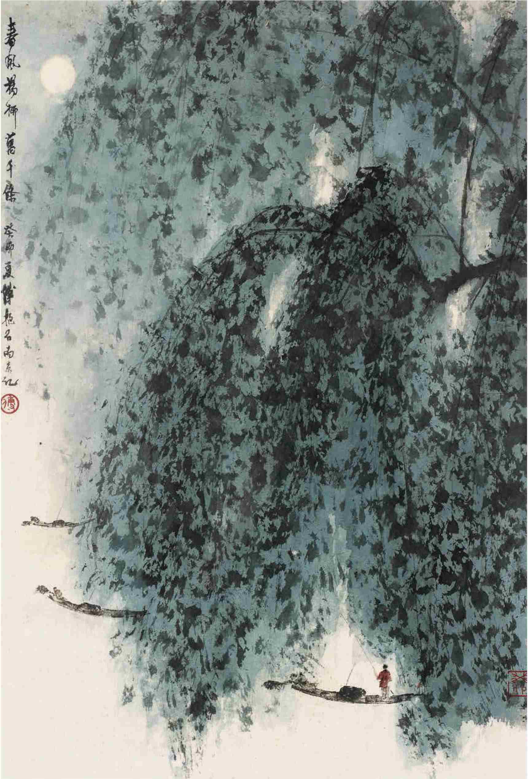我对于画面造型的美,是颇喜欢那在乱头粗服之中,并不缺少谨严精细的。乱头粗服,不能成自恬静的氛围,而严谨精细,则非放纵的笔墨所可达成,二者相和,适得其中。我画山水,是充分利用两种不同的笔墨的对比,极力使画面“动”起来的,云峰树石,若想纵姿苍莽,那么人物屋宇,就必定精细整饰。根据中国画的传统论,我是往往喜欢山水、云物用元以下的技法,而人物、宫观、道具,则在南宋以上。