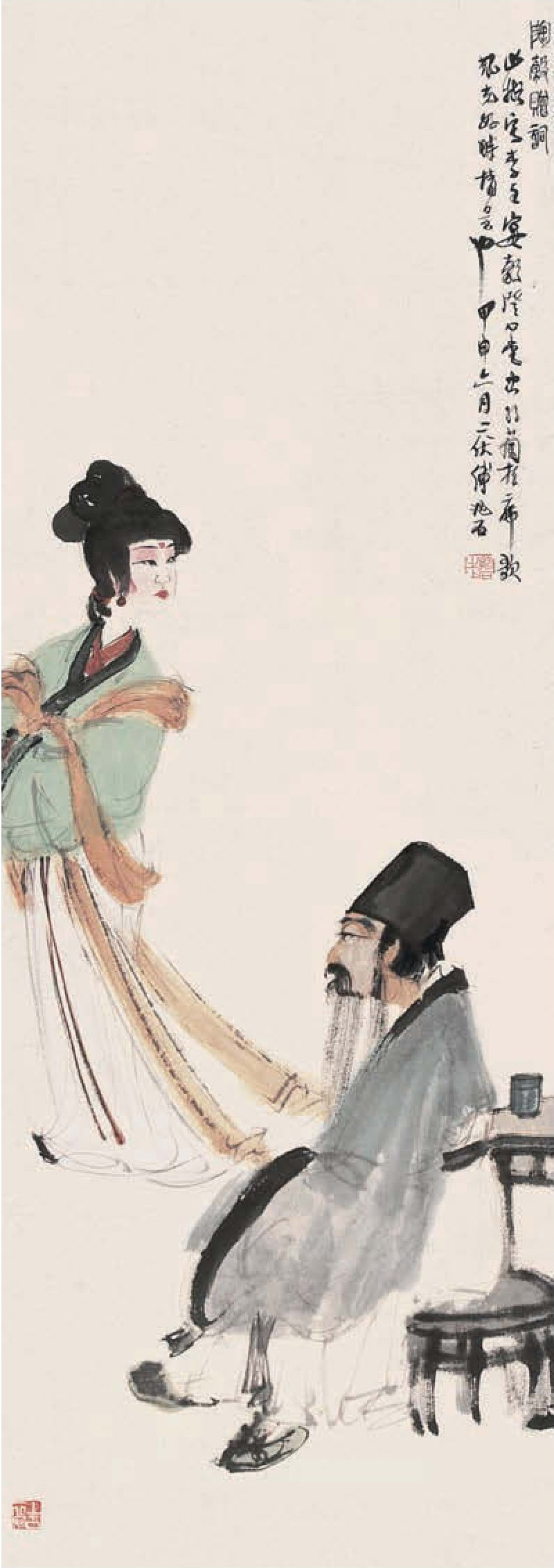 傅抱石学画伊始就把“重人品轻形似”的思想始终作为中国画的基本特征,所以他认为“画家一定要多读书,必须有书卷气,否则就一文不值”