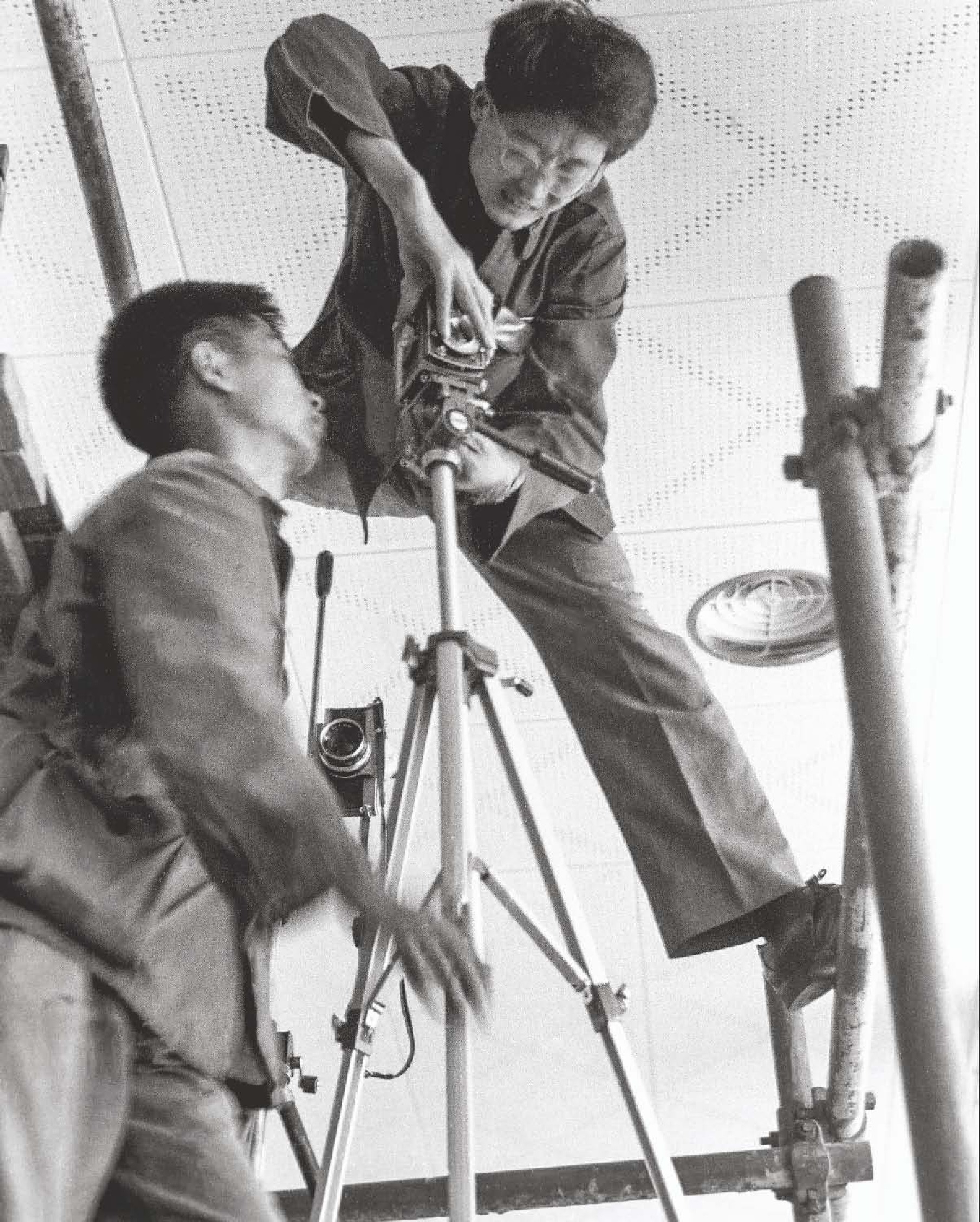 池小宁与阿城拍摄首都机场壁画创作过程,一九七九年九月,任曙林摄 FNoCE7OZuTHGSDQvKGQlVZMR6tVH6jr6PJHxrtwARNuOU6CInBi7BVDgfanuQCMm