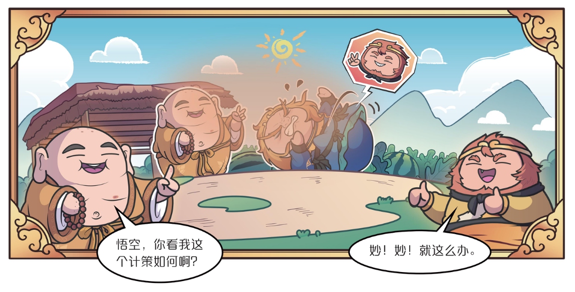 00 弥勒佛笑着说出了降妖的法子,他会在山坡下设一草庵,种一片瓜果,然后让悟空前去与妖怪索战,将妖怪引到这瓜田中。