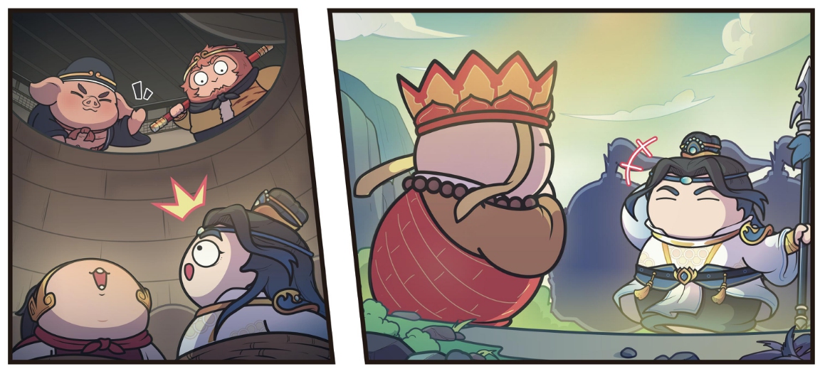 黄眉大王再次得胜回寺,命小妖取了绳索,把小张太子他们捆起来丢到了地窖里。