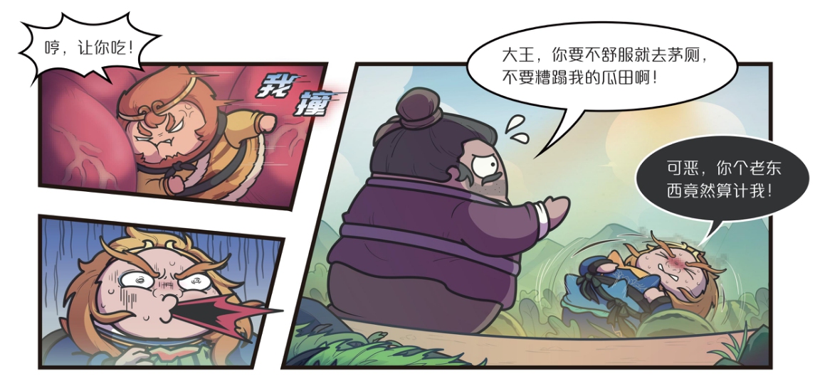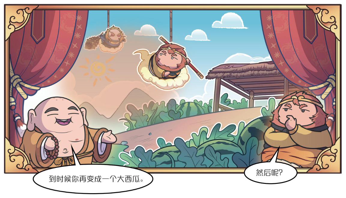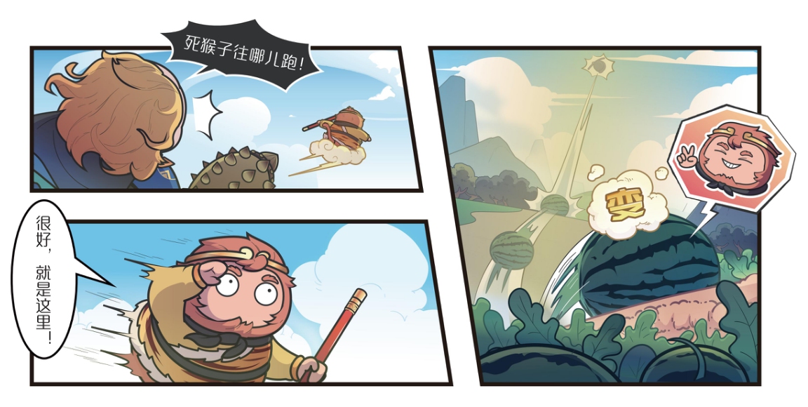 00 打了几回合后,悟空假装不敌,败下阵来,往西山坡逃去,来到瓜田下,打了个滚钻到田里,变成了一个又熟又甜的大西瓜。