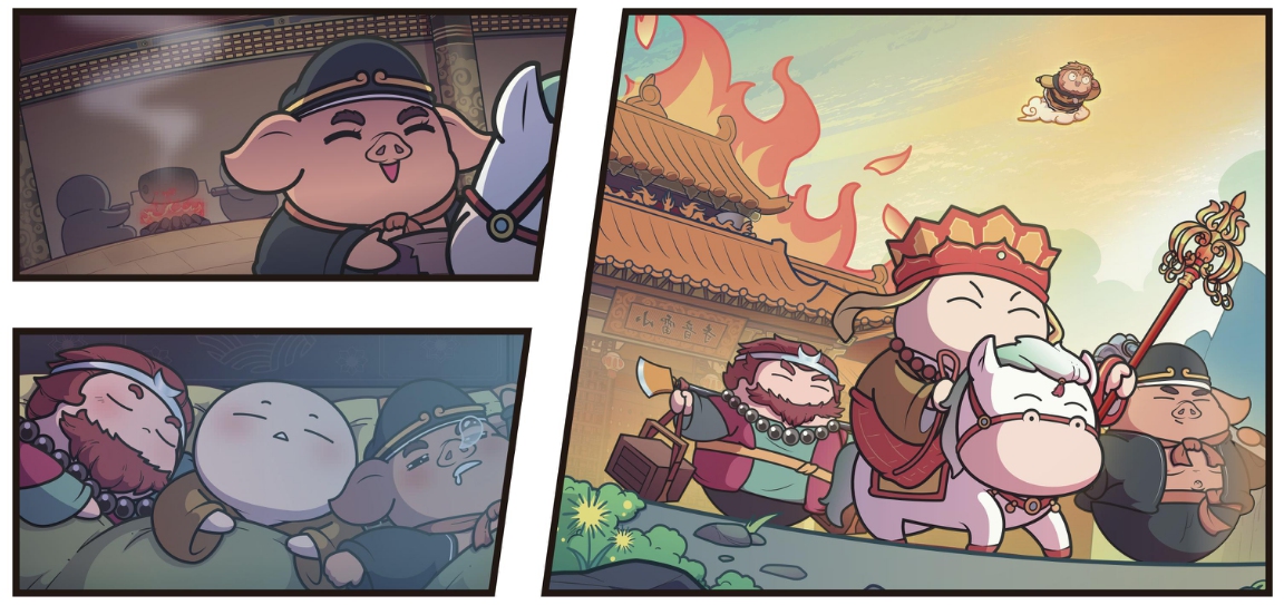 00 但小张太子他们还没来得及反应,就被抛到空中的旧白布袋吸了进去,只有悟空提前躲开了。