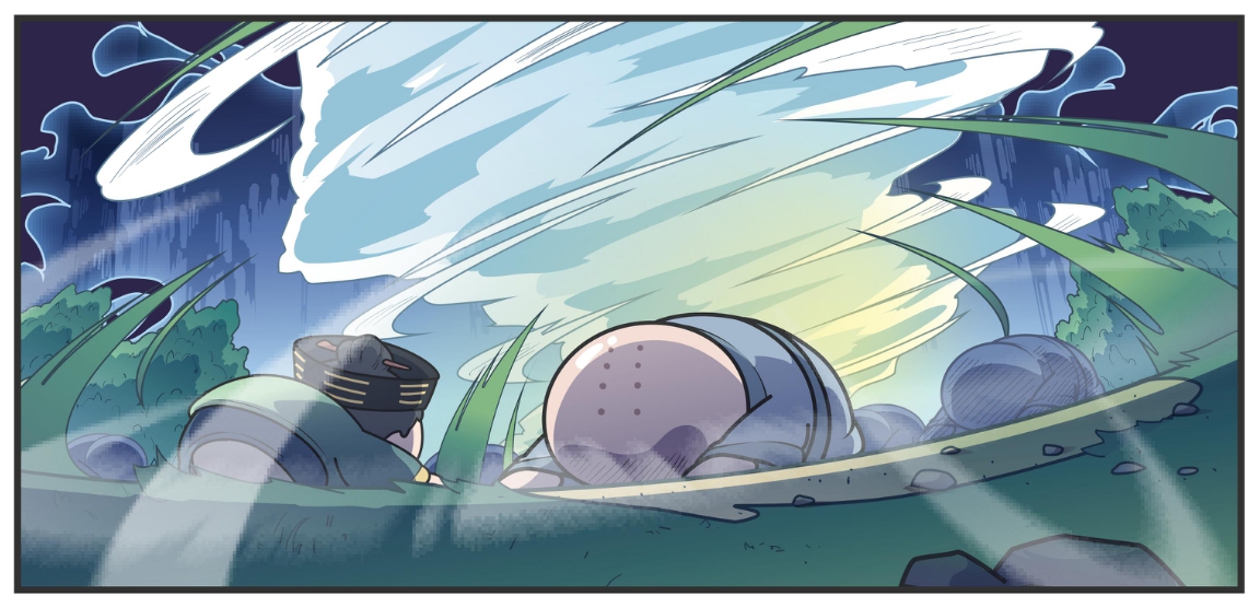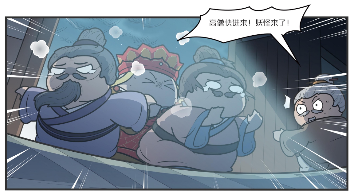 几个老人听后十分感动,与三藏四人闲谈起来。正说着,忽然听见外面呼呼风响,吓得几个老人浑身发软。