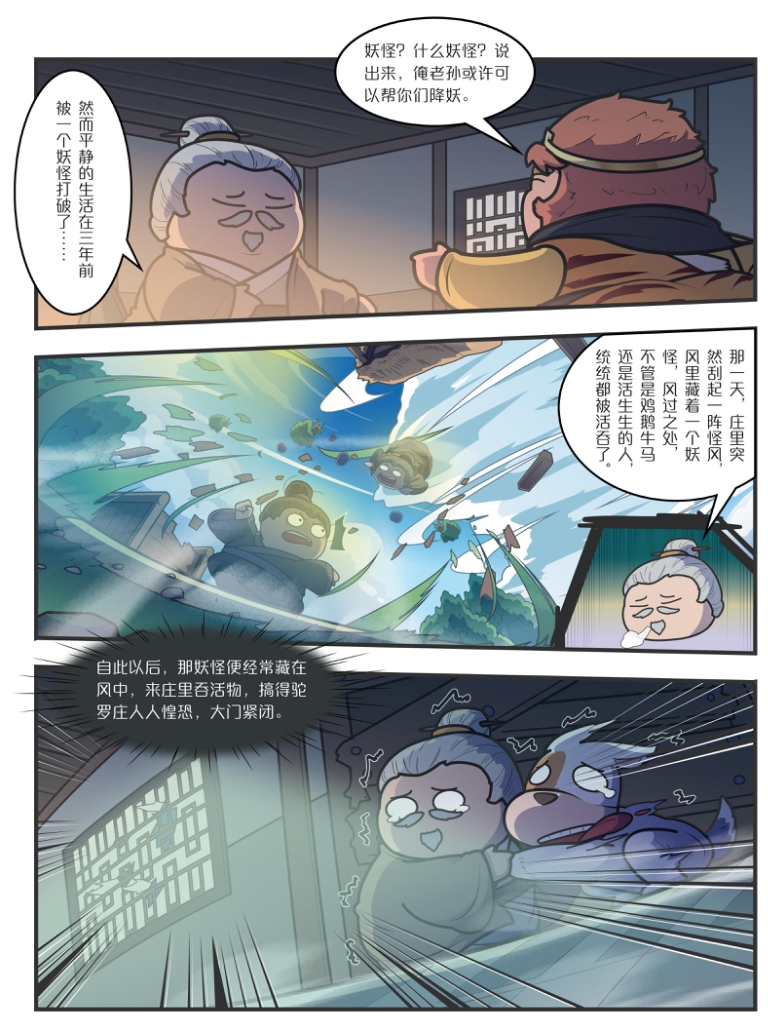 悟空听老人讲完后,十分疑惑,既然那妖怪搅扰了驼罗庄的人三年,不知道伤害了多少生灵,为何他们能一直忍受到现在?