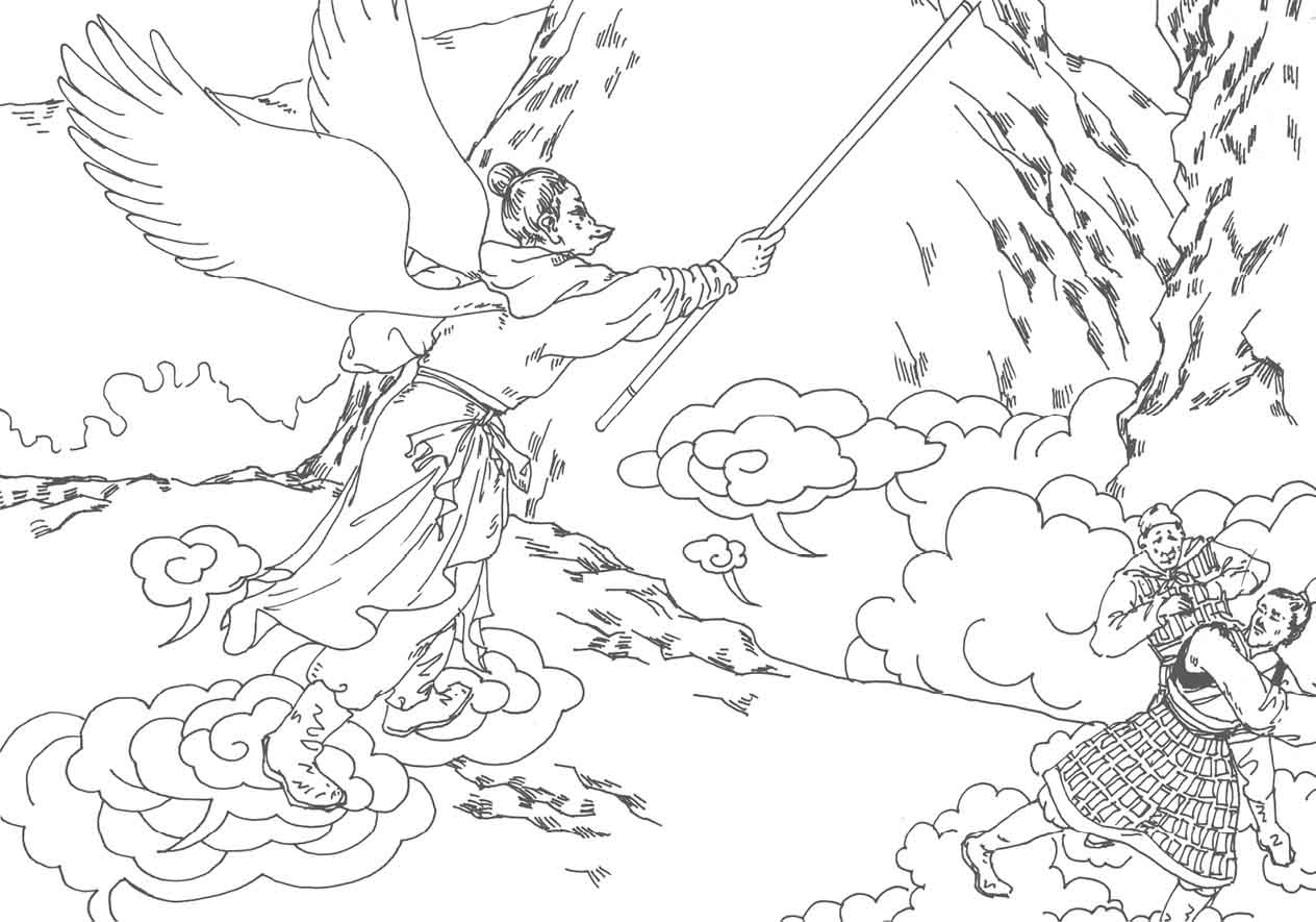 没想到怪事发生了,雷震子没走几步,就感觉他的左肋下面咔咔地出声,紧接着长出一只翅膀来。雷震子一惊,赶紧用手去拔。结果左边的还没拔掉,右边肋下也长出翅膀来。雷震子吓得都呆了,这还不是最要命的。更吓人的是,他感觉到自己的鼻子变高了,眼睛也突了出去,牙齿横生,露在外面;脸色变蓝,头发变红。雷震子都快急哭了,这时金霞童子来催他,说师父等着急了。雷震子无奈,拖着两只翅膀,像只斗败了的公鸡,蔫头耷脑地回到玉柱洞。