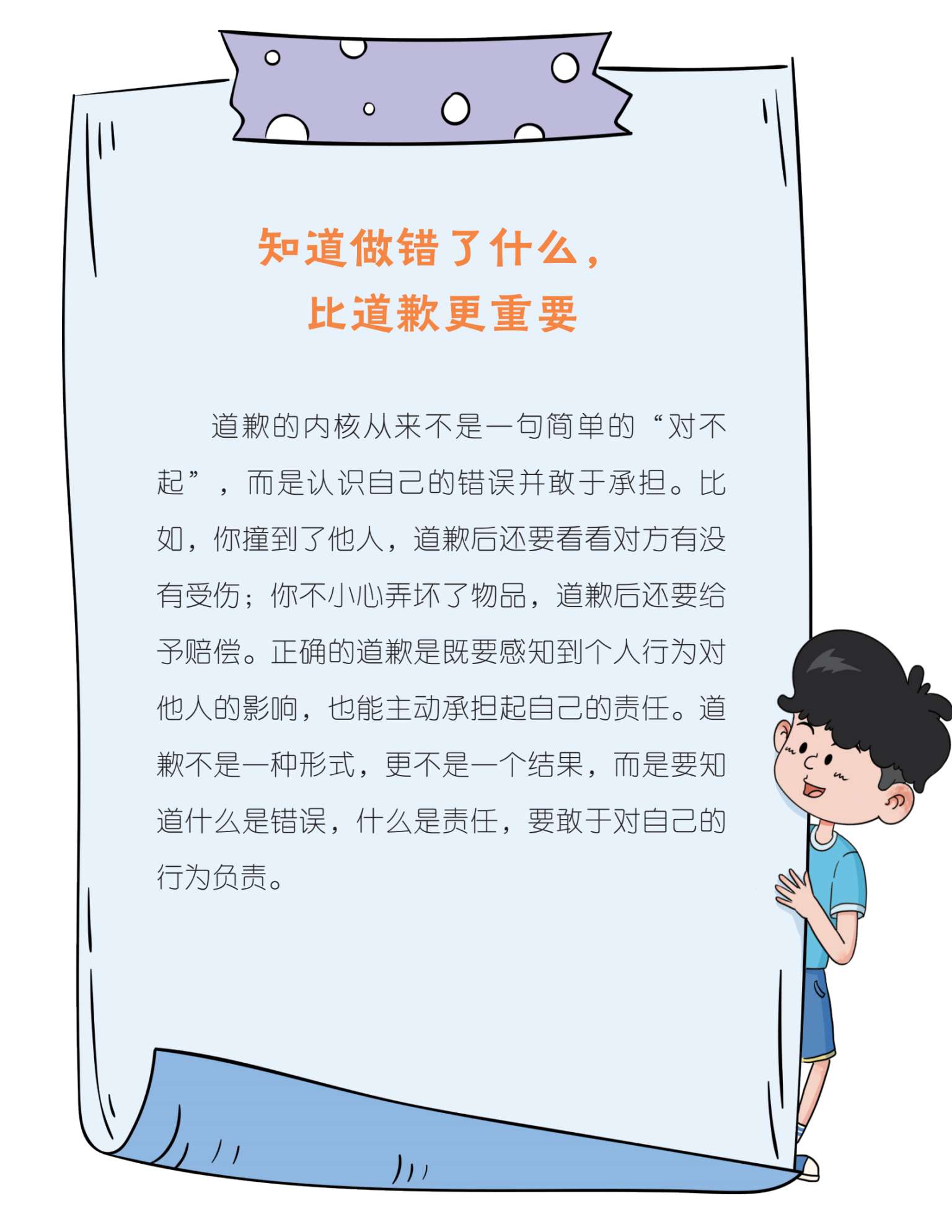 做错事要勇于承认错误,不仅要说“对不起”,还要明白自己哪里做得不对,然后想办法弥补,这样做才会交到更多的朋友。