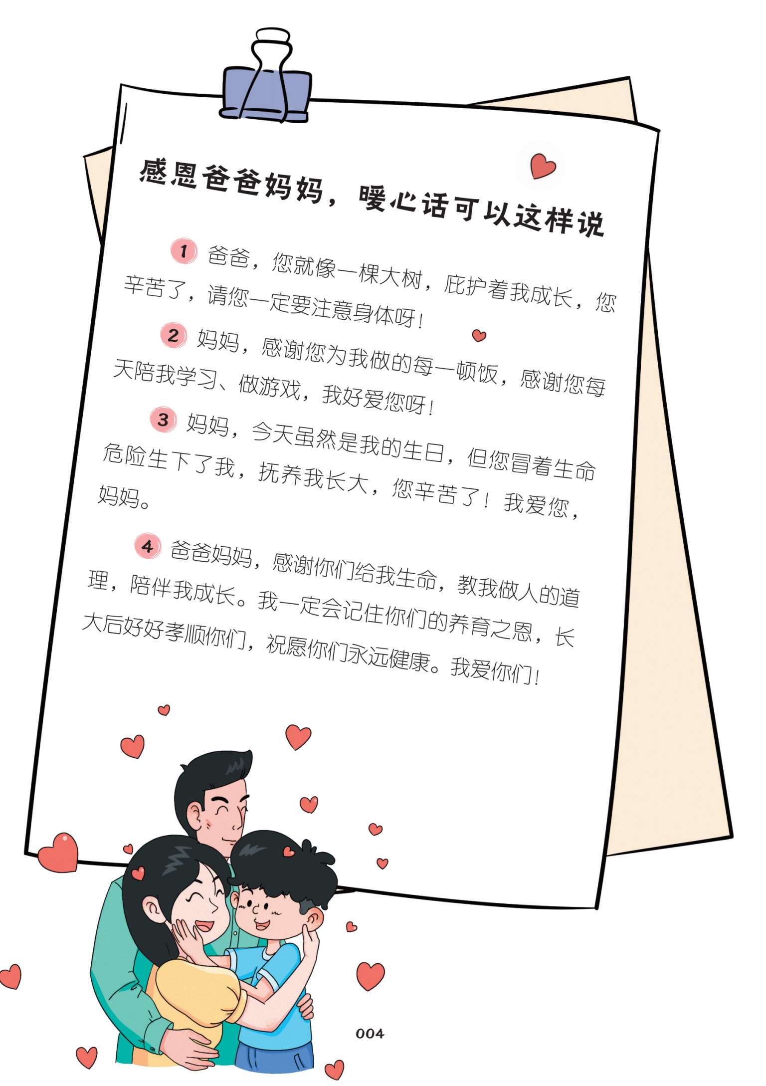 我们要 体谅父母,关心父 母,孝敬父母,感恩父母 。跟父母说话更要有礼貌。