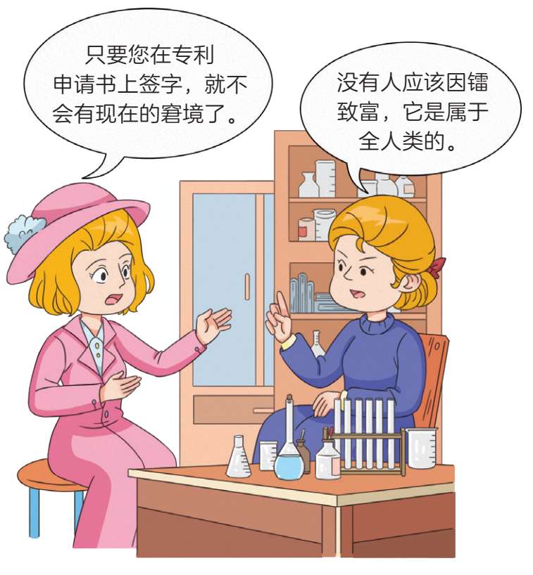 居里夫人在实验成功以后,没有申请技术专利,而是公开了镭的提纯方法。当她想购买1克镭用于后续的研究时,却发现自己根本买不起……公众得知消息后,捐献了1克镭给居里夫人。后来她想在祖国波兰开一家镭研究院,用于研究用镭治疗癌症,公众再次向她捐赠了1克镭。
