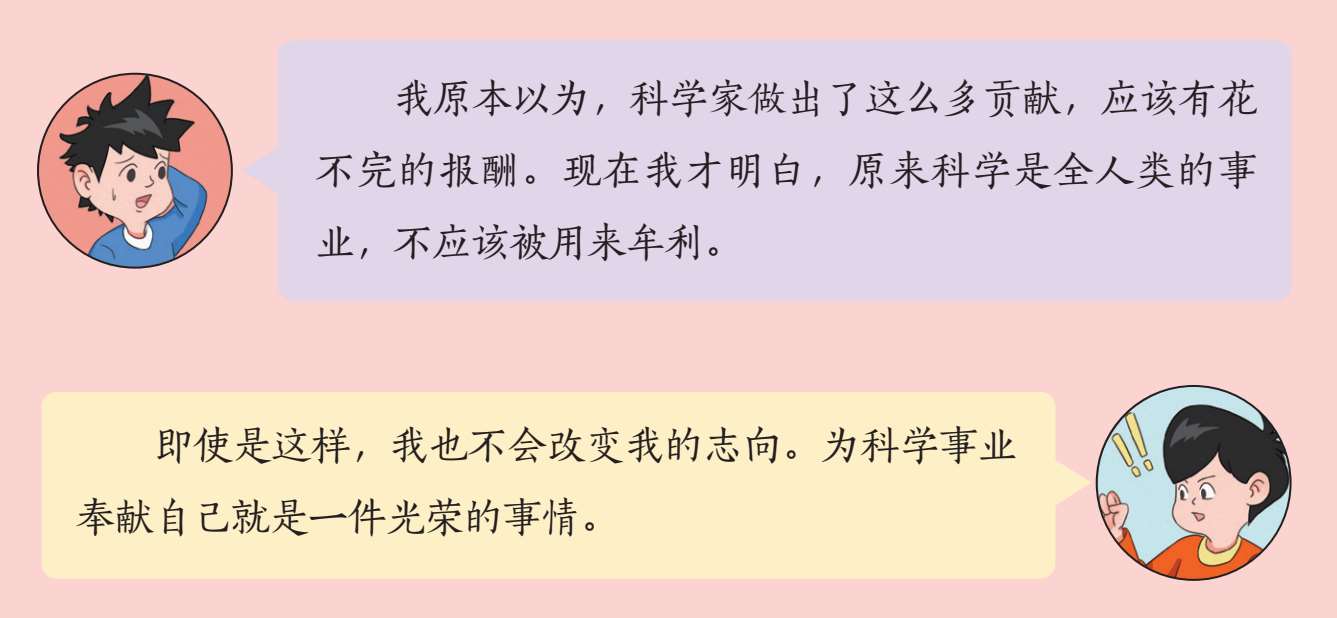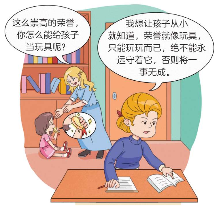 居里夫人的研究获得了很多荣誉奖项,英国皇家学会曾颁给她一枚金质奖章。但她并没有把奖章当成宝物一样珍藏起来,而是送给女儿当玩具。有一天,居里夫人的一个朋友来她家做客,正好看见她的女儿拿着那枚奖章玩耍。朋友十分不解,而居里夫人则用一句话点醒了她。