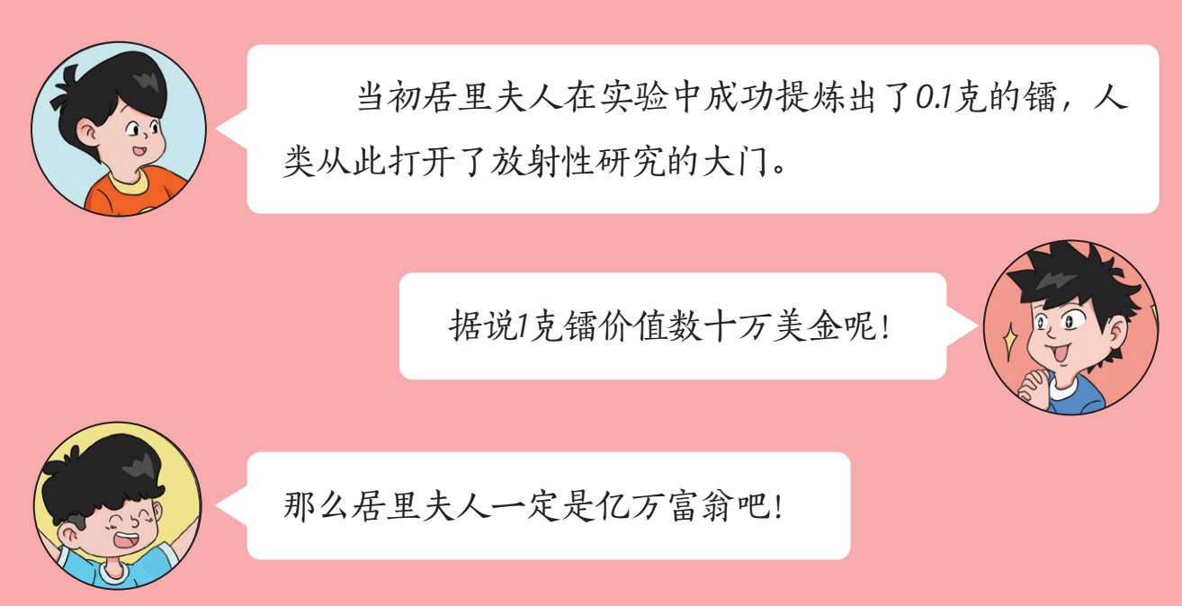 事实上,居里夫人生活清贫,一生仅有的3克镭中,有2克都是别人捐赠的……