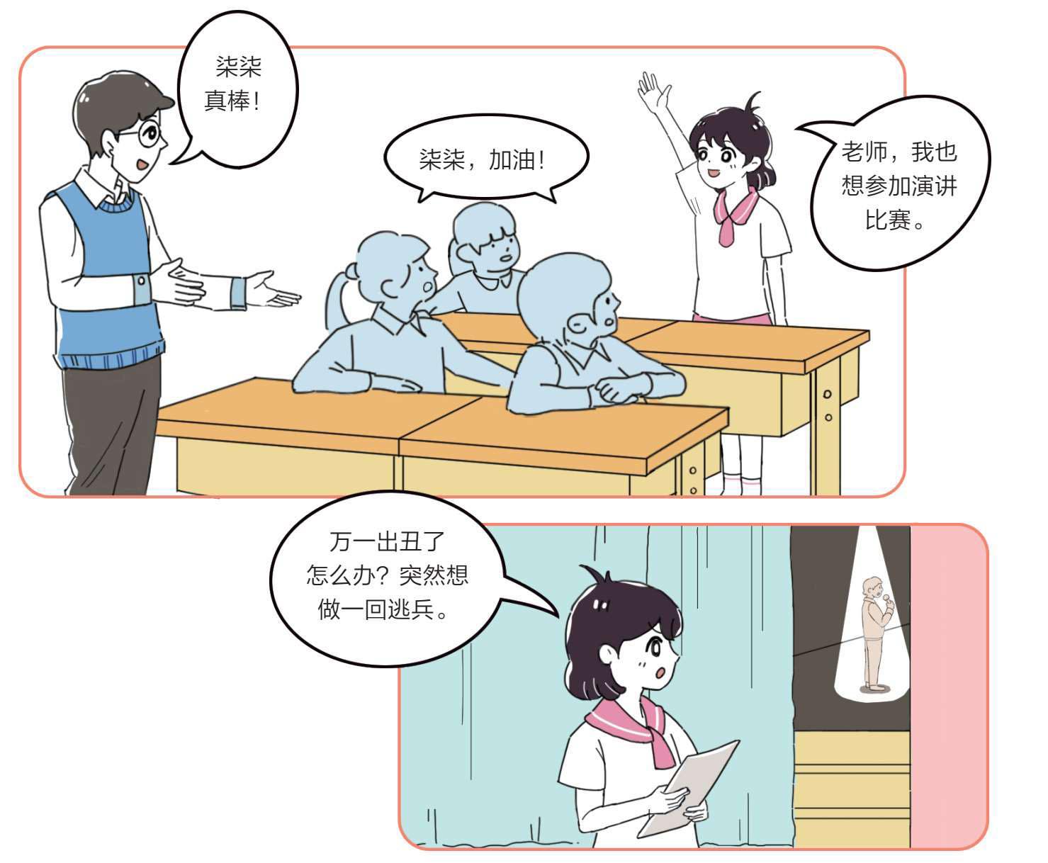 柒柒鼓起勇气报名了学校的演讲比赛。虽然柒柒做了非常充分的准备,但临近上台的时候,她非常害怕自己会在演讲的过程中出丑,这种紧张感让她产生了当逃兵的想法,她实在不知道该怎么办。