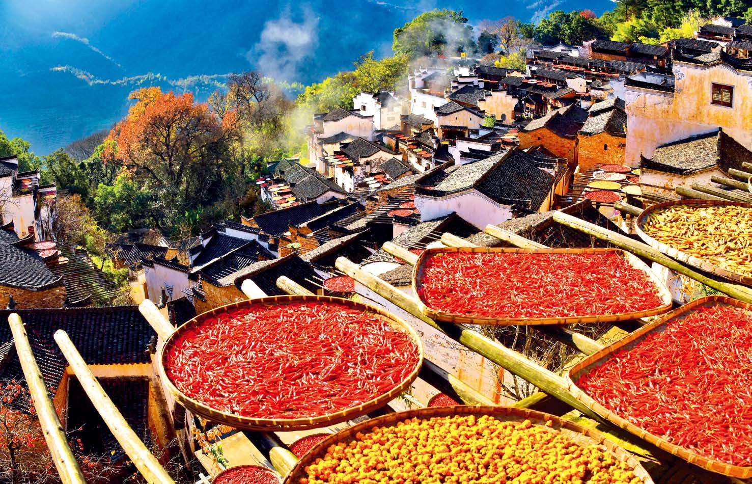 2016 年 12 月 16 日,江西省婺源县篁岭村晾晒收获的农产品。(曹加祥 摄)