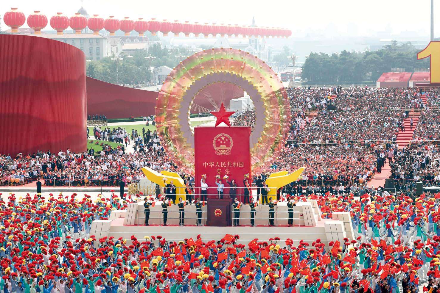 2019 年 10 月 1 日上午,庆祝中华人民共和国成立 70 周年大会在北京天安门广场隆重举行。这是群众游行中的“民主法治”方阵。(兰红光 摄)