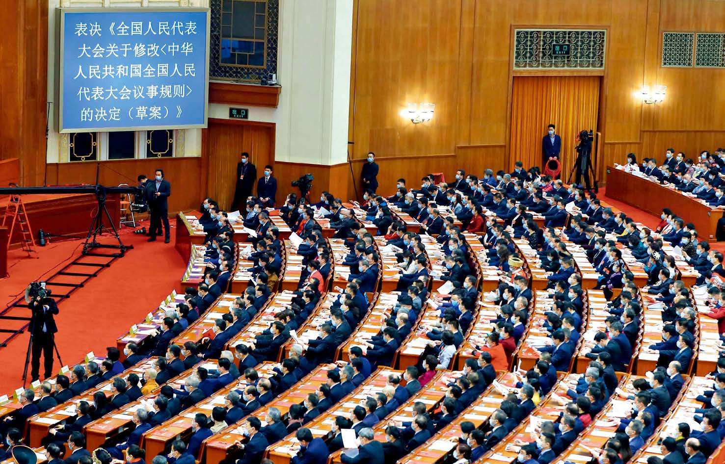 2021 年 3 月 11 日,全国人大议事规则修改决定经十三届全国人大四次会议表决通过。(张玉薇 摄)