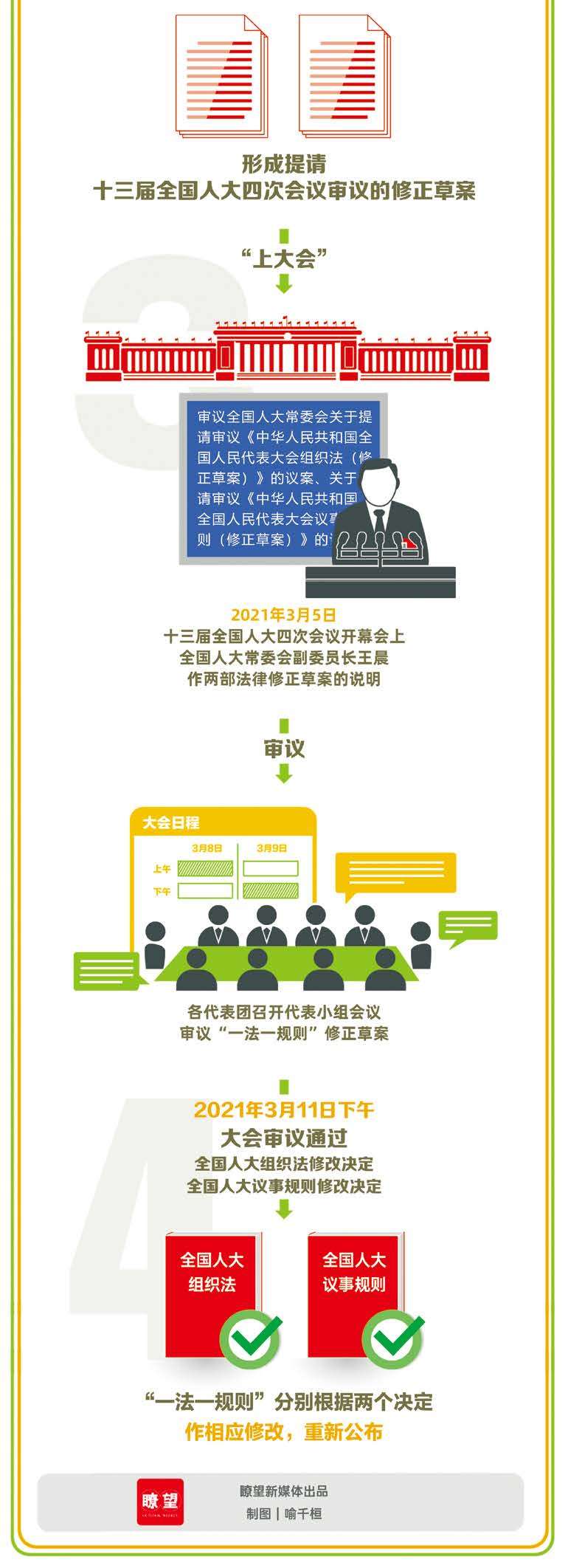 2021 年 3 月 11 日下午,全国人大组织法修改决定、全国人大议事规则修改决定经十三届全国人大四次会议表决通过。