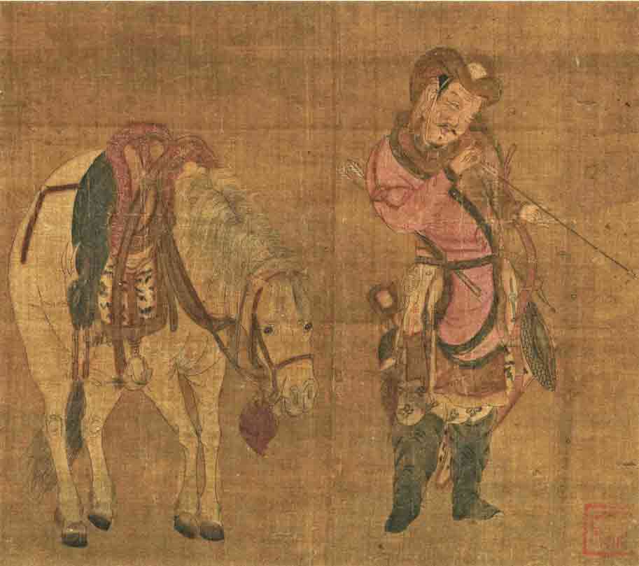 台北故宫博物院藏。图中一契丹兵士手拿弓箭。