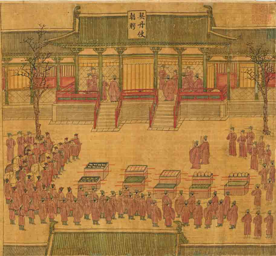 故宫博物院藏。图中辽使来贺真宗生日,可见宋辽交通之一斑。