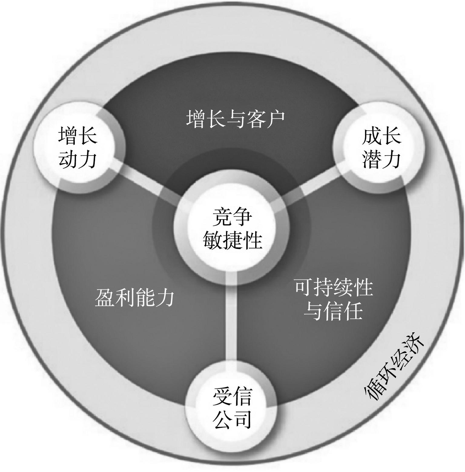 该优势不仅能平衡,更能连接和强化埃森哲定义的企业敏捷竞争力框架的三个维度:增长与客户、盈利能力、可持续性和信任(见图1.2)。 33