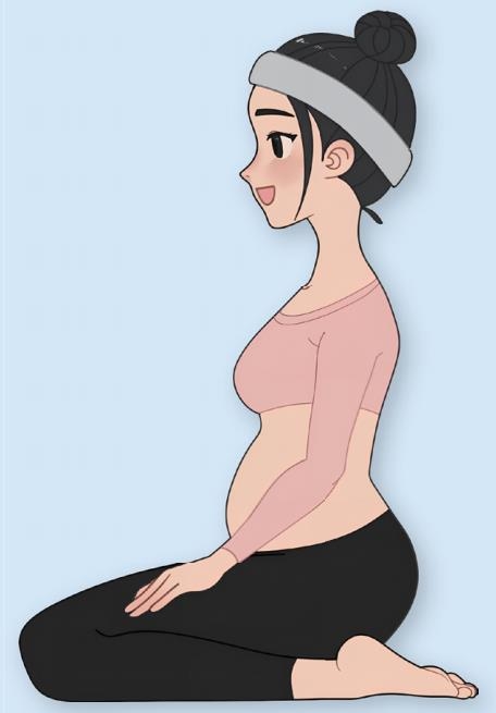 金刚坐可增强消化功能,缓解大腿前侧紧绷感,还能减轻因怀孕导致身体重心改变而产生的脚踝区域负重感。孕期及产后耻骨联合疼痛的孕产妇非常适合此坐姿。
