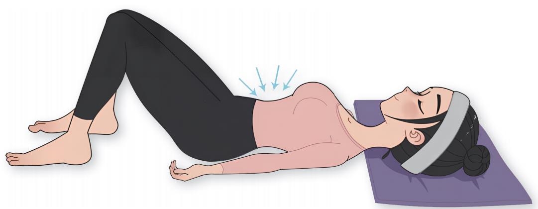 该练习适合备孕、孕期及产后各阶段女性。腹式呼吸本质上是对横膈膜呼吸的强化。该呼吸方式能扩大膈肌活动范围,提升肺的弹性,进而增加肺通气量。这一过程不仅能有效改善心脏、肺以及腹部器官功能,比如放松腹部肌肉能调节血压,还对淋巴回流有促进作用。腹式呼吸可以改善备孕期女性盆腔血液循环,减少孕期胸闷气短现象,平衡神经系统,缓解孕产期女性盆底功能障碍,减轻下腰疼痛,对于身心放松非常有益。