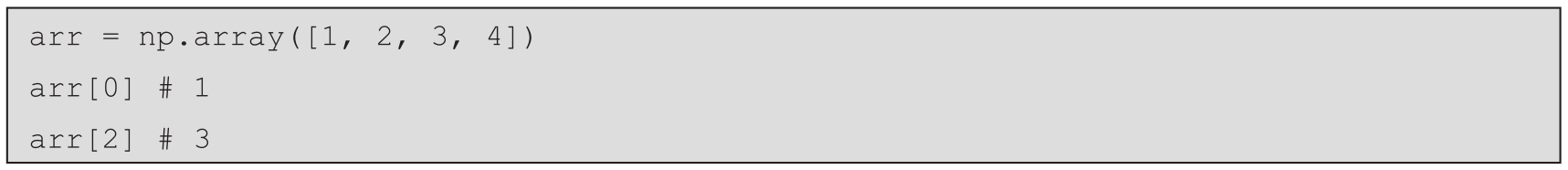 NumPy数组支持getitem协议,因此可以像访问列表一样访问数组中的元素,并支持所有逐元素执行的算术运算。这意味着我们可以使用索引符号和索引位置从指定的数组中检索元素,如下所示: