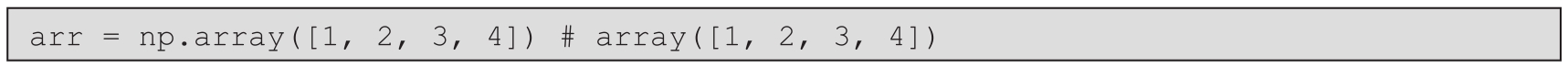 在1.4.3节中,除了我们在这里使用的np.array例程外,我们还将研究创建NumPy数组的各种方法。