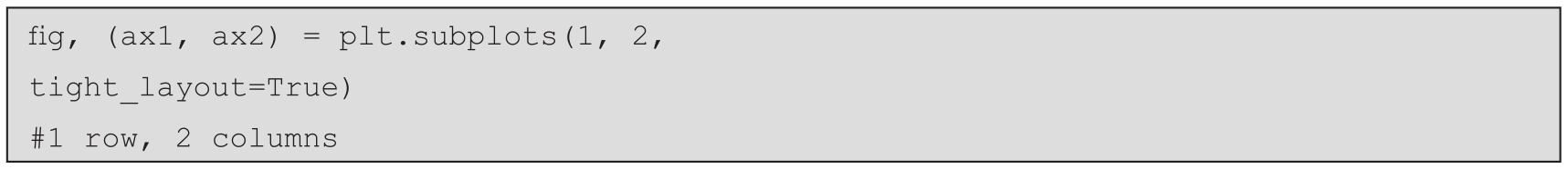 1.我们使用subplots例程创建一个新图形,并引用每个子图中的所有Axes对象,这些子图按一行两列的网格排列。我们还将tight_layout关键字参数设置为True,以自动调整生成图形的布局。这个参数设置并不是严格必要的,但在这种情况下它会产生比默认值更好的结果: