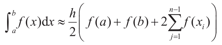 大多数数值积分技术都遵循相同的基本程序。首先,我们在积分区域内选择点 x i , i= 1,2,…, n ,然后使用这些值和 f ( x i )的值来近似积分。例如,利用梯形法则,我们用下面的公式来近似积分:
