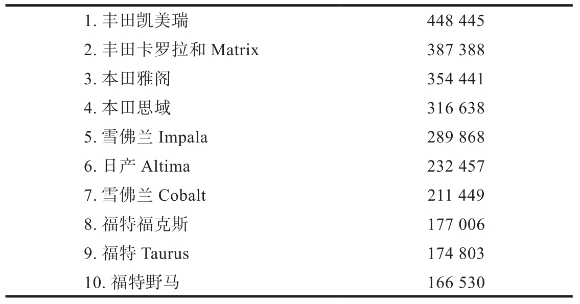 表1-2 2006年美国畅销汽车榜(单位:辆)