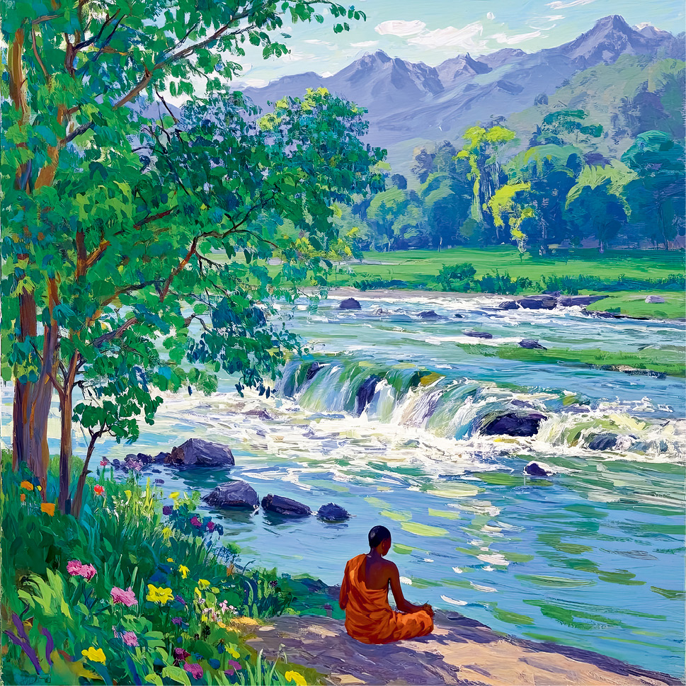悉达多跟随船夫瓦苏代瓦生活,并向河流学习。通过长时间的倾听,他逐渐领悟到河流的声音包含了世间万物的声音,包括欢乐与痛苦、生命与死亡。他理解了时间的流逝只是表象,万物都在同一永恒的当下相互关联。