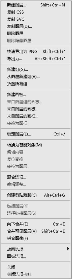 (1)使用“图层”控制面板菜单。单击“图层”控制面板右上方的