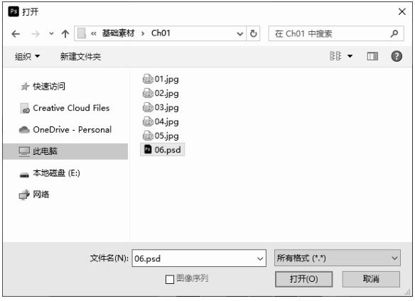 选择“文件 > 打开”命令,弹出“打开”对话框,选择需要的文件,如图1-95所示。单击“打开”按钮,将图像文件在Photoshop 2021中打开,效果如图1-96所示。